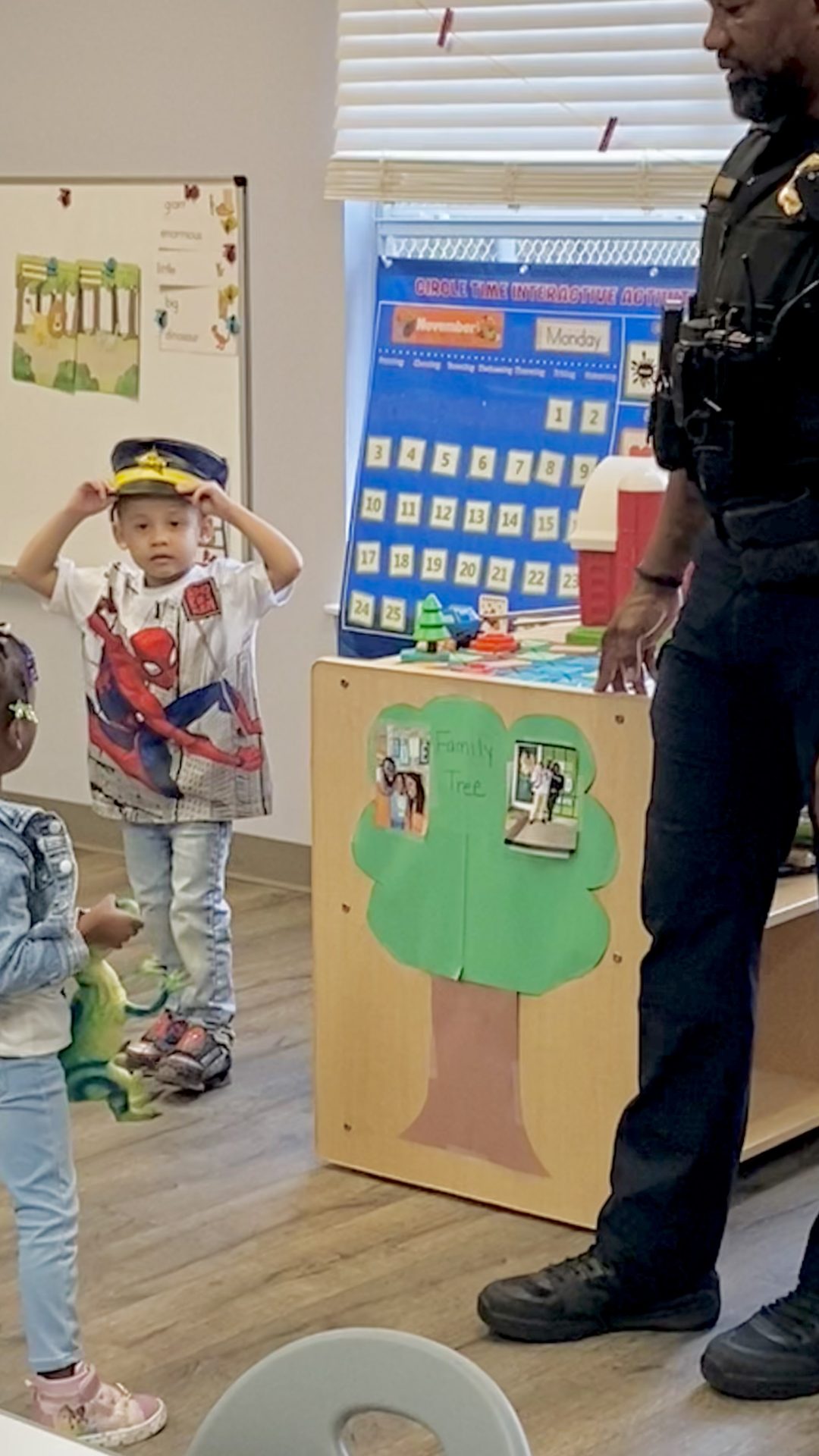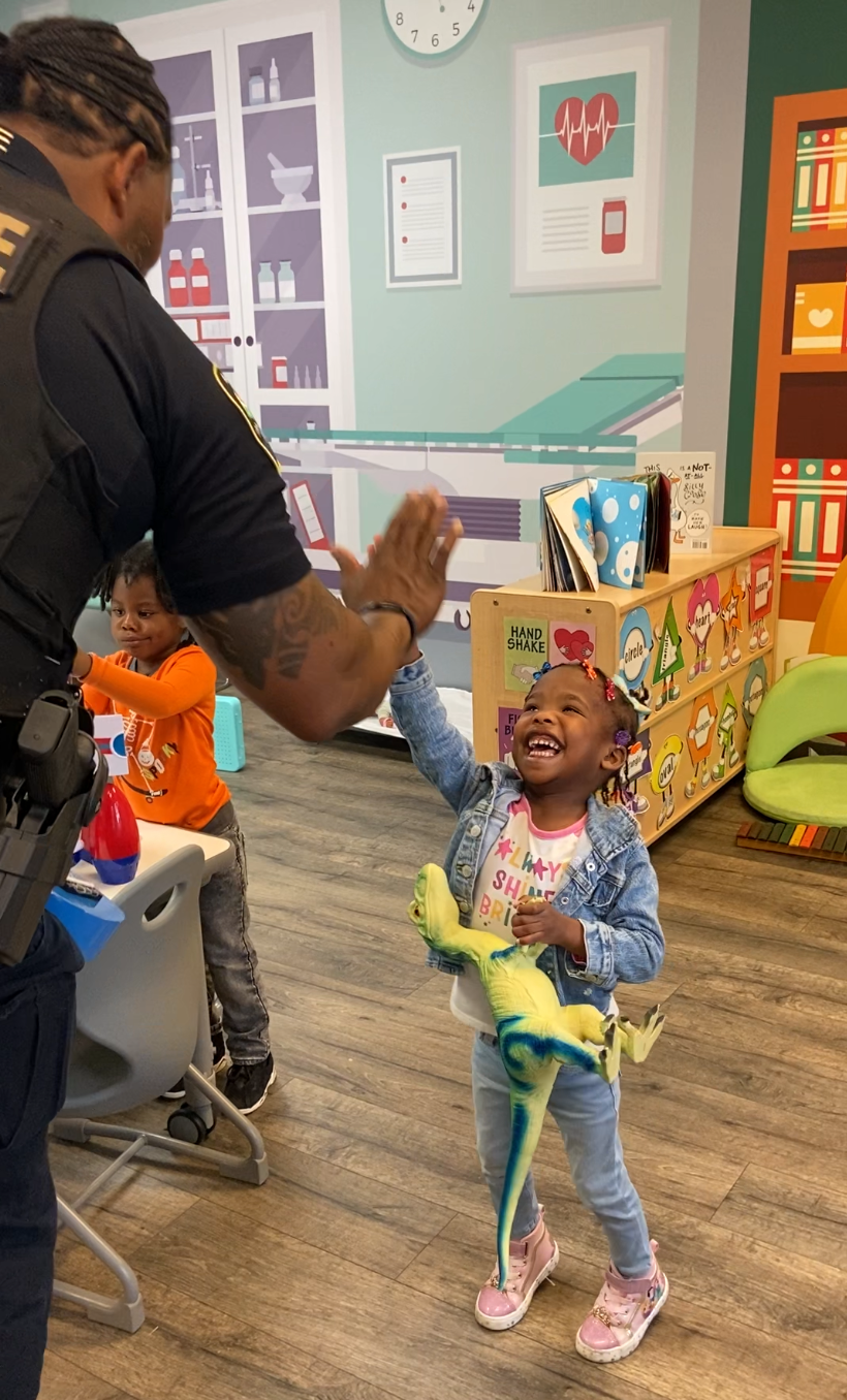 Not to be left out, children in our Child Development Center (CDC) enjoyed in-class and playground time with officers. It wasn’t easy to see who enjoyed the visit more.
